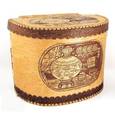Хлебница из бересты с откидной крышкой на шарнире, украшенной изображением деревенского дома. В такой хлебнице из бересты можно хранить не только хлеб, ...