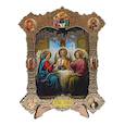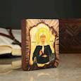 Икона изготовлена из состаренного дерева с полноцветным изображением и металлическими элементами. Икона выполнена в стиле древених греческих икон. На ее ...