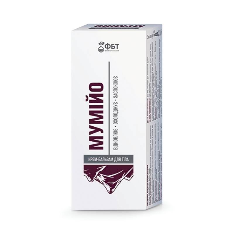 Крем-бальзам для тела Мумие оказывает ранозаживляющее и регенерирующее действие. Регенерирующие свойства мумие усилены традиционными, проверенными годами стимулирующими регенерацию средствами - это витамины А и Е, аллантоин. Мумие значительно снижает болевые ощущения, способствует выведению солей, стимулирует восстановление тканей, улучшает кровообращение, оказывает успокаивающее действие, оказывает антисептическое действие. Мумие является сильным биостимулятором, усиливающим обновительные процессы в поврежденных тканях; антитоксическое и общеукрепляющее средство.