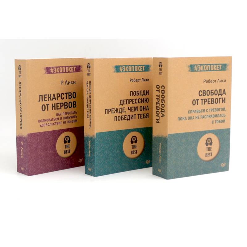 Комплект содержит книги. «Свобода от тревоги» Перед любым ответственным событием вы трясетесь от ужаса? Не можете уверенно разговаривать с начальником? Боитесь, что с вашими детьми случится что-то плохое? Из этой книги вы узнаете, как обмануть свой страх и научиться справляться со стрессом. Здесь вы найдете простое пошаговое руководство, чтобы преодолеть любые виды беспокойства. Теперь вы навсегда избавитесь от тревоги и начнете жить полной жизнью. «Победи депрессию прежде, чем она победит тебя» В мире более 350 миллионов человек страдают депрессией. Это число неуклонно растет, и, к сожалению, треть людей, которые чувствуют невыносимую боль, безнадежность и напряжение депрессии, никогда не обращаются за лечением. Роберт Лихи, психотерапевт с мировым именем, рассказывает о причинах, симптомах и методах лечения депрессии. Реальные истории пациентов в сочетании с простыми пошаговыми инструкциями помогут вам разобраться со своей депрессией и навсегда расстаться с ней. Вы выясните, как победить чувство усталости, одиночества и безнадежности. Разработаете план развития уверенности в себе. В книге собраны самые мощные инструменты, которые помогут вам победить депрессию и снова почувствовать себя хорошо. «Лекарство от нервов» Волнение захлестывает вас в самые неподходящие моменты? Беспокойство становится вашей второй натурой? Вы много раз перепроверяете себя и все равно не можете успокоиться? На протяжении более двадцати пяти лет доктор Роберт Л. Лихи успешно помог тысячам людей победить волнение и беспокойство. Эта книга, известная во всем мире, содержит программу, включающую практические, простые в использовании советы и методы. Вы научитесь спокойно и уверенно решать как общие жизненные вопросы, так и конкретные задачи, связанные с отношениями, здоровьем, деньгами, работой и необходимостью самоутверждения в мире. Хватит тревожиться, начинайте жить!