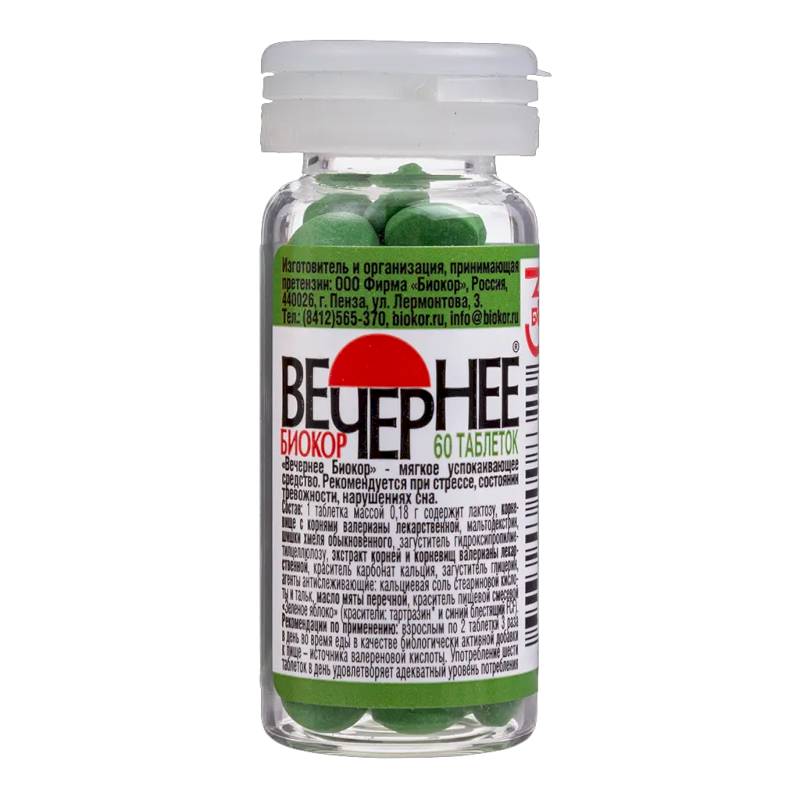 Благодаря природному комплексу трав таблетки Вечернее «Биокор» обладает мягким успокаивающим и спазмолитическим действием.