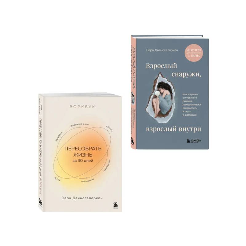 Комплект состоит из 2-х книг: "Взрослый снаружи, взрослый внутри. Как исцелить внутреннего ребенка, психологически повзрослеть и стать счастливым", "Воркбук. Пересобрать жизнь за 30 дней"