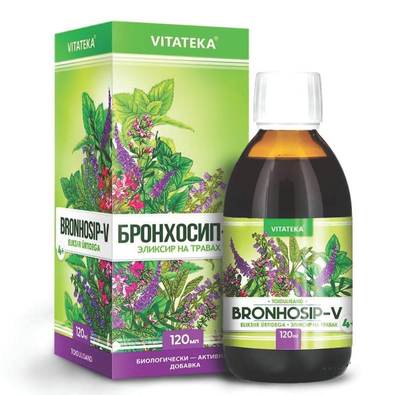 Бронхосип-V Эликсир на травах – это биологически активная добавка на основе натуральных растительных экстрактов. Средство создано для поддержки организма в сезон простуд и в период повышенной нагрузки на дыхательную систему. Эликсир сочетает в себе полезные свойства лекарственных растений и витамина С.
