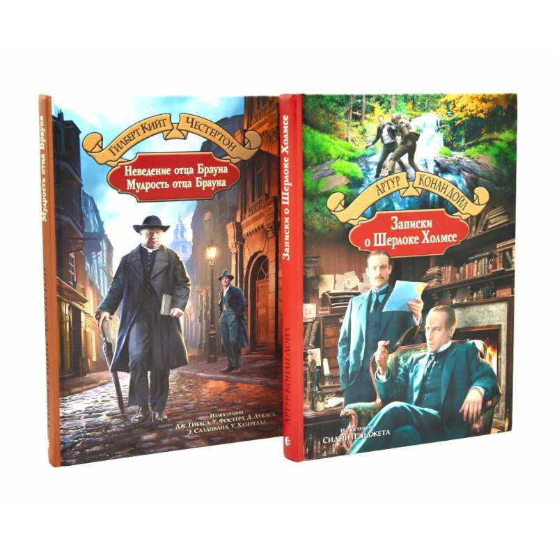 Комплект объединяет шедевры классического детектива: рассказы о отце Брауне (Г. К. Честертон, сборники «Неведение отца Брауна» и «Мудрость отца Брауна») и Шерлоке Холмсе (А. Конан Дойл, «Записки о Шерлоке Холмсе»).