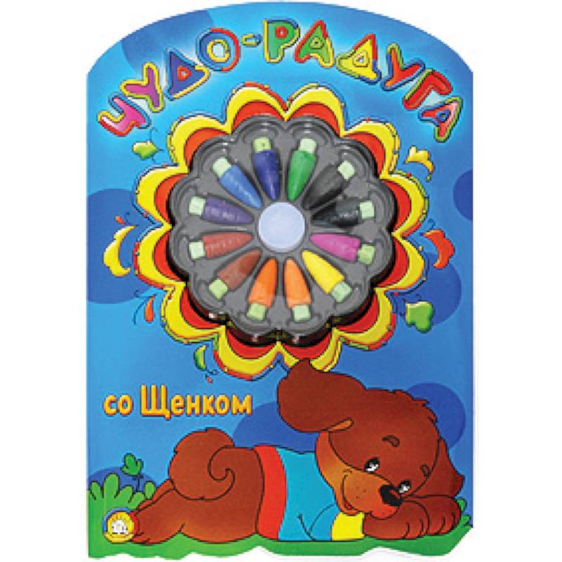 Чудо-радуга со щенком. Книжки серии "Чудо-радуга" с зайкой, мишкой, щенком и котенком не дадут заскучать маленькому художнику. Ведь помимо страничек с картинками для раскрашивания, к этим книжкам прилагаются разноцветные восковые мелки и забавные трафареты, с помощью которых даже чистый лист бумаги можно превратить в раскраску! Мелки удобно расположены в пластиковой коробочке на обложке благодаря оригинальной вырубке.