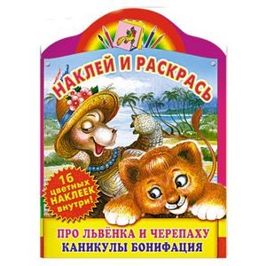 Наклей и раскрась. Про львенка и черепаху. Каникулы Бонифация. Альбом для раскрашивания с наклейками
