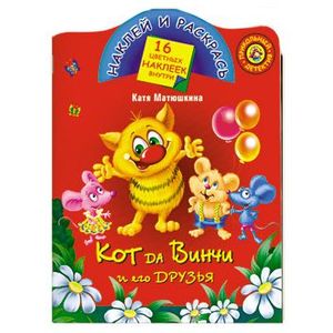 Раскраска: Кот да Винчи и его друзья: 16 цветных наклеек внутри