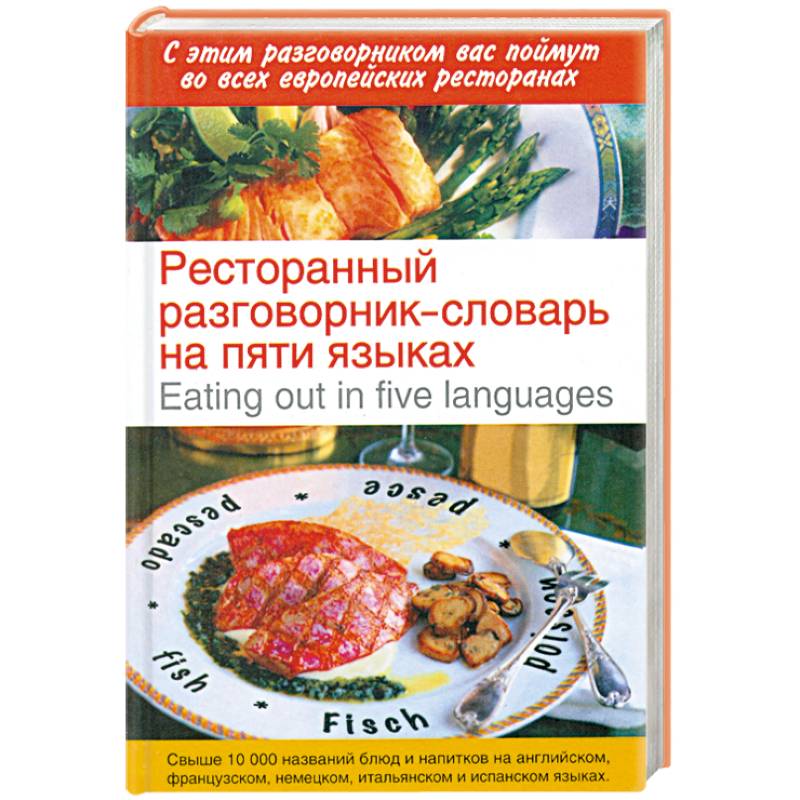 В данный разговорник-словарь включены свыше 10000 названий блюд и напитков и их ингредиентов на английском, французском, немецком, итальянском и испанском языках. Это поможет вам сориентироваться в меню практически любой страны. В разговорник включены полезные фразы, которые помогут вам выбрать ресторан, заказать столик и даже предъявить претензию, а также фразы, важные для вегетарианцев, аллергиков, лиц, придерживающихся строгих диет.