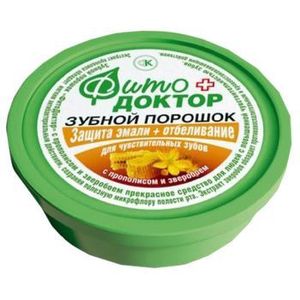 Применение: Нанести зубной порошок на влажную зубную щётку. Прополоскать полость рта водой.