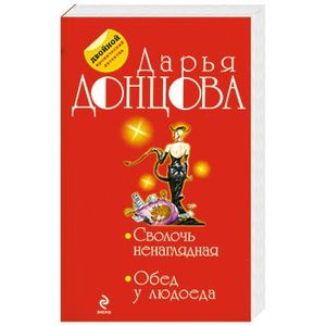 В книгу вошли 2 детектива Дарьи Донцовой "Сволочь ненаглядная" и "Обед у людоеда". «Сволочь ненаглядная» Юлька, невестка моей подруги, сломала ногу и попала в институт Склифосовского. Палата подобралась молодая и веселая. Хоть в этом ей повезло, зато мне – нет! Я опять вляпалась в очередную историю! Самым неожиданным образом ее соседки, Настя и Ирина, умирают от тромба. И теперь мне предстоит выполнить Настино посмертное поручение. Надо найти ее брата и передать ему деньги. Тридцать тысяч баксов! Не хило! Но разыскать Егора оказалось весьма непросто… и даже опасно для жизни… «Обед у людоеда» Я Евлампия Романова – агент бюро темных услуг «Алиби». Выполняя задание шефа, я под видом прислуги поселилась в семье клиентки и в два счета застукала мужа Ани с любовницей. На дне рождения хозяина умерла, выпив ликер с цианидом, их гостья, в которой я без труда узнала ту самую любовницу. И сразу неприятности посыпались как из рога изобилия – отравили моего шефа, арестовали Аню, я потеряла работу… Но я никогда не унываю, поэтому по просьбе Аниной дочери смело взялась за расследование…