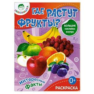 Любознашка — новая серия книг для любопытных малышей! Где растут фрукты? Почему у жирафа длинная шея, а у слона большие уши? Ответы на многие занимательные вопросы есть в этих книгах. А еще там есть замечательные раскраски и большие наклейки! Пусть досуг вашего малыша будет полезным!