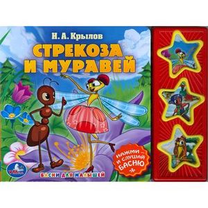 Книга с 3 музыкальными кнопками «Стрекоза и муравей. Басни для малышей» обязательно понравится вашему малышу. Громкая озвученная книга с красочными яркими иллюстрациями заинтересует ребенка и познакомит его с увлекательным миром чтения. Малыш может сам почитать книжку, а можете вы прочитать ее малышу, если он еще не знает букв. Кроме того, если нажать на кнопку, то книжка сама расскажет известную басню Н.А. Крылова вашей крохе. Бренд «Умка» делает чтение книг невероятно интересным! Книга разработана при участии высококвалифицированных педагогов и учитывает особенности раннего развития личности. Она способствует развитию внимания, памяти, мышления, расширяет кругозор ребенка, вырабатывает интерес к чтению.