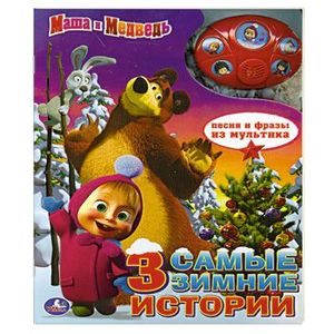 "Умка" Книга озвученная Маша и Медведь "3 самые зимние истории" 5 звуковых кнопок с песенкой и фразами из мультфильма. Яркие иллюстрации, любимые персонажи на картинках книжки обязательно понравятся малышу, а звуковые эффекты: песни и фразы из мультфильма, сделают процесс чтения еще более интересным и увлекательным. Озвученная книжка - великолепный подарок для малышей.