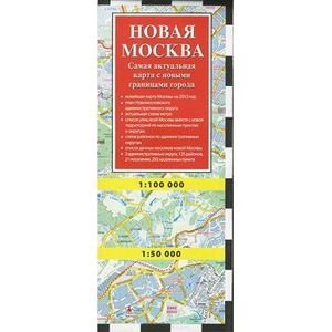 Вашему вниманию предлагается самая актуальная карта с новыми границами города: - Новейшая карта Москвы на 2013 год; - План Новомосковского административного округа; - Актуальная схема метро; - Список улиц всей Москвы вместе с новой территорией по населенным пунктам и округам; - схема районов по административным округам; - список дачных поселков Новой Москвы; - 2 административных округа, 125 районов, 21 поселение, 293 населенных пункта. Масштаб карты Москвы: 1:100000. Масштаб карты Новомосковского АО: 1:50000. Размер карты: 69,5х100 см.