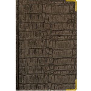 Формат А6 (110х145 мм). Металлические скругленные уголки, швейная строчка по периметру обложки, цветные форзацы. Бумага - офсет 70 г/м2, тонированная (слоновая кость), печать – 2 краски, блок - клетка. Сшитый блок, позолоченный торец блока, ляссе (закладка) - 2 шт. Индивидуальная упаковка - мелованный картон.