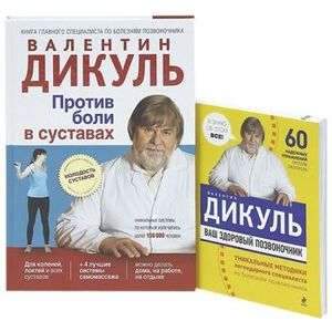 Книга 1 Каждый родитель мечтает, чтобы его ребенок имел хорошую осанку, рос здоровым и успешным. Однако дети все больше времени проводят у телевизора или за компьютером. Это быстро сказывается на позвоночнике. Сколиоз может обнаружиться в очень раннем возрасте и быстро прогрессировать. Академик Валентин Иванович Дикуль - лучший специалист по здоровью позвоночника и одновременно заботливый отец. Он разработал системы уникальных упражнений для профилактики и лечения сколиоза у детей любого возраста. Их выполняют дома, открыв книгу Дикуля на нужной странице. Книга 2 Против боли в суставах Самая частая жалоба наших родителей - на боли в суставах. Нагрузки, которые берут на себя мужчины, и ежедневный труд, который ложится на женские плечи, изнашивают наши суставы и приводят к болезням. Академик В.И.Дикуль, признанный авторитет по проблемам опорно-двигательного аппарата, разработал систему, которая позволяет сохранить молодость и подвижность на долгие годы. Потеря гибкости кистей рук, боли в локтях и коленях могут остаться в прошлом. Простые упражнения и комплексы на каждый день избавят суставы от дискомфорта. Здоровье - в ваших суставах!
