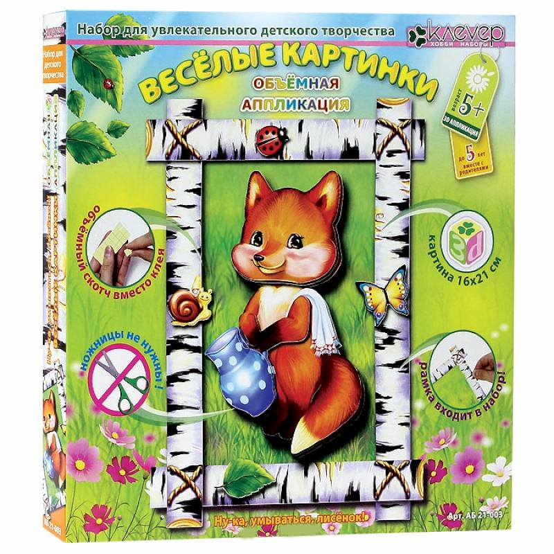 Состав набора: комплект готовых бумажных деталей, картонная картинка и комплект рамок, комплект квадратов объёмного скотча. Размер готовой картины: 16х21 см. Набор для детского творчества. Работа с набором "Ну-ка, умываться, лисёнок!"- это увлекательный процесс творчества и, как результат, замечательное изделие. Наклеиваем послойно, шаг за шагом детали - и персонаж на картине становится объёмным, как будто оживает! Работа над картиной развивает пространственное воображение, усидчивость, мелкую моторику и аккуратность. Все персонажи серии "Весёлые картинки"- милые, добрые и красочные, а картины с ними отлично украсят детскую или станут оригинальным подарком! Работа со скотчем: возьмите квадрат скотча, указанного на детали (в инструкции) размера; снимите защитную плёнку с одной стороны скотча, наклейте скотч на деталь. Снимите защитную плёнку с другой стороны скотча и наклейте деталь на деталь. Сделать картину очень легко: 1. Наклейте рамки на картину: наклейте восемь квадратов скотча на указанные места на картине, наклейте две длинные полосы рамки, поверх наклейте две короткие полосы рамки. 2. Выньте детали из листа, осторожно освобождая мелкие элементы. Наклейте квадраты скотча на оборот деталей на указанные места: маленькие - на маленькие, большие - на большие. 3. Наклейте на картину деталь 1; на неё наклейте деталь 2, совместив контуры деталей 1 и 2, и так далее. 4. Наклейте божью коровку, бабочку, улитку и листочек, украсив картину по своему вкусу. Объёмная картина готова!