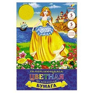 Принцесса и кораблик 5листов 5-ти цветов. Цветная самоклеющаяся мелованная бумага 5 л. 5 цв. Формат 194х280 мм. Папка - импортный мел. Картон, с карманом и вырубкой.