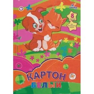 Белый картон "Котенок и щенок"