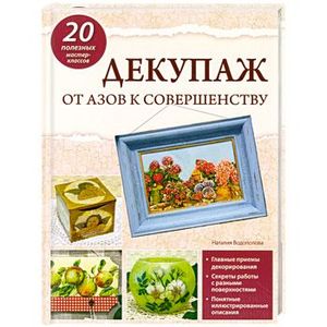 Если вы хотите подарить новую жизнь любимой, но постаревшей вещи, или наоборот, придать налет благородной старины прозрачной стеклянной вазе или расписной шкатулке, оформить несколько предметов интерьера в едином стиле или расписать что-нибудь, почти не умея рисовать, декор в технике декупаж - именно то, что вам нужно! Руководитель учебно-досугового центра "АРТИШОК", автор мастер-классов и обучающих видеокурсов Наталия Водополова в своей книге подробно и понятно рассказывает о том, как с помощью декупажа можно имитировать роспись и декоративно состаривать самые разные предметы, полностью меняя их стиль и облик. В книге представлено 20 подробных мастер-классов с пошаговыми фотографиями, которые помогут овладеть базовыми навыками и вдохновят на создание изысканных шедевров.