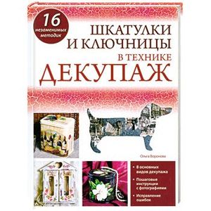 Представляем вниманию рукодельниц новую книгу известного российского автора Ольги Вороновой, посвященную декорированию шкатулок и ключниц в технике декупаж. Кроме того, автор подробно и понятно рассказывает о видах классического и объемного декупажа, о новых и традиционных методиках, а также о том, почему что-то может не получиться. Книга построена в виде иллюстрированных пошаговых мастер-классов, благодаря чему справиться с любой представленной моделью в книге смогут даже новички, а опытным мастерам понравятся разделы, где представлены новаторские методики декорирования в этой технике.