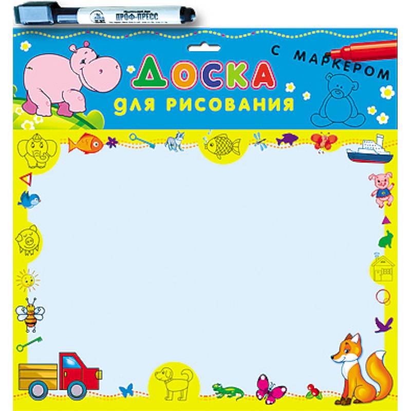 При помощи доски для рисования и прилагающегося к ней маркера Ваш малыш сможет создать любую картину. А начать можно с перерисовывания иллюстраций, расположенных по краям доски. Сначала ребенку можно предложить назвать персонаж или предмет на доске, а затем срисовать его.