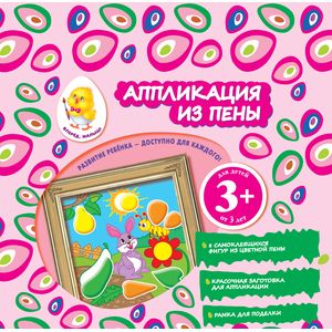 В наборе красочная заготовка для аппликации и самоклеящиеся фигурки из цветной пены. Создаем аппликацию без клея и ножниц! Дополнительные возможности: изучаем цвета и геометрические фигуры.