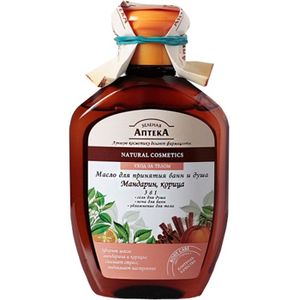 Нежное масло для ванн и душа с пряным сладким ароматом корицы и мандарина устраняет депрессию и чувство подавленности, снимает стресс, помогает при бессоннице. Обеспечивает прекрасное самочувствие при дефиците солнца, защищает от простудных заболеваний. Масло мандарина тонизирует, освежает уставшую ослабленную кожу. Эфирное масло корицы стимулирует кровообращение и обмен веществ, препятствует накоплению лишнего веса. Повышает эффективность спортивных занятий, позволяет быстрее разгореться и легче переносить спортивные нагрузки, снимает мышечную усталость.