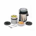 Термос обеденный 2000 мл с 3-мя пластиковыми контейнерами для разных продуктов. В пищевых термосах с широким горлом можно хранить, как горячие первые и вторые блюда, так и лёд, мороженое, замороженные продукты. Они хорошо изолированы, а специальная пробка хорошо плотно прилегает к горловине. Пищевые термосы с широким горлом позволят Вам наслаждаться вкусными домашними обедами вдали от дома. В походе или на работе, с Вами всегда будет любимая вкусная еда. Благодаря широкому горлу таких термосов, Вам будет удобно есть в самых суровых «полевых» условиях.