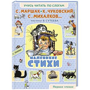 "Маленькие стихи" - сборник классических стихотворений С. Маршака ("Усатый-полосатый"), С. Михалкова ("Трезор", "Мой щенок" и др.), К. Чуковского ("Английские детские песенки") и других коротких и простых для понимания ребенка, который осваивает навыки чтения. Все стихотворения ярко проиллюстрированы известным художником-мультипликатором В. Сутеевым, а также разбиты на слоги и снабжены ударениями, как в обычном букваре.