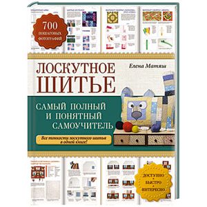 Невероятно полезный для начинающих мастериц пошаговый самоучитель по одному из самых любимых в нашей стране виду рукоделия - лоскутному шитью! В книге дана вся необходимая информация о материалах, инструментах и приспособлениях, которые понадобятся в работе, приемах выкраивания и сшивания лоскутков ткани, техниках лоскутного шитья и способах их комбинирования, вариантах оформления края изделия кантом и декорирования готовых изделий с помощью аппликаций, кружева, тесьмы, пуговиц. Благодаря ярким пошаговым фотографиям, детальным описаниям выполнения каждого этапа работы вы с легкостью освоите все тонкости лоскутного шитья и сможете самостоятельно создать совершенно очаровательные сумочки, косметички, подушки, чехлы, декоративные панно, различные аксессуары для кухни и многое другое!
