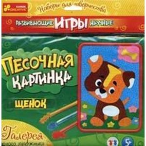В наборе: основа с нанесенным рисунком и номерами цвета песка, 9 тюбиков с разноцветным песком, инструкция.