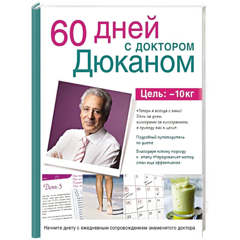 Новая книга доктора Пьера Дюкана обязательна для тех, кто хочет начать диету в сопровождении знаменитого французского диетолога. Вместе с ним вы будете идти к цели: избавиться от 10 килограммов за 60 дней. Это первое издание, которое создано для постоянного сопровождения худеющего. Каждый день, на протяжении двух месяцев, доктор будет поддерживать и направлять вас: давать советы по питанию, составлять списки покупок и варианты простой физической нагрузки, предлагать полезные рецепты и мотивирующие рекомендации для предотвращения срывов и нарушений. С таким наставником терять вес будет гораздо легче и эффективнее, чем самостоятельно продумывая свое меню и упражнения.