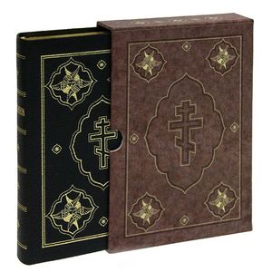 Стильно оформленное подарочное издание, в кожаном тисненом переплете, с трехсторонним золотым обрезом и шелковым ляссе, с индексами по обрезу для быстрого поиска библейских книг.