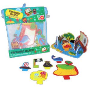 В набор входи необычные остров, который держится на плаву, и 16 цветных деталей. Придумывайте и создавайте интересные 3D сценки на свой вкус. А чтобы получить ещё больше удовольствия от купания, украсьте ванную и стены веселыми наклейками.