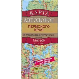 На карте представлена сеть автомобильных дорог Пермского края и прилегающих территорий (в масштабе 1:500 000). Её дополняют карта административно-территориального устройства области со схемой перекрытия между листами основной карты, а также схема проезда по г. Пермь. Данная карта является частью многотомного сборника карт автодорог России.