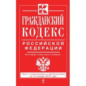 Настоящее издание содержит текст Гражданского кодекса Российской Федерации (первая, вторая, третья и четвертая части) с изменениями и дополнениями на на 15 января 2015 г. Если есть изменения, вступающие в силу позднее, то вместе с редакцией нормы, действующей на эту дату, приводится норма в новой редакции и указывается дата, с которой она вступает в силу.