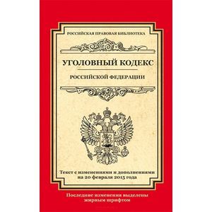 Настоящее издание содержит текст Уголовного кодекса Российской Федерации в редакции, действующей на 20 февраля 2015 года с удобной навигацией. Если есть изменения, вступающие в силу позднее, то вместе с редакцией нормы, действующей на эту дату, приводится норма в новой редакции и указывается дата, с которой она вступает в силу.