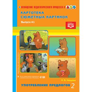 В серии «Оснащение педагогического процесса в ДОУ» уже вышли пособия, содержащие материал для формирования словаря и совершенствования грамматического строя речи детей дошкольного возраста: «Картотека сюжетных картинок. Глагольный (предикативный) словарь дошкольника», «Картотека предметных картинок. Образный строй речи дошкольника (атрибутивный словарь)». Новое пособие Картотека сюжетных картинок. Употребление предлогов» также содержит материал для формирования грамматического строя речи, обучения употреблению предложно-падежных конструкций. Кроме того, сюжетные картинки могут быть использованы для обучения детей творческому рассказыванию. Пособие адресовано педагогам ДОУ, учителям-логопедам, родителям дошкольников.