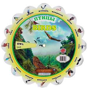 Вашему вниманию предлагается учебное пособие " Birds / Птицы. Тематический словарь". Поворачивая круг, совместите прорезь с названием нужной птицы на лепестке и узнайте соответствующее английское слово. Для изучающих английский язык.