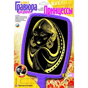Гравюра для девочек "Принцесса Индии" с металлическим эффектом "под золото" содержит все необходимое для юных художниц. В комплект входит основа с нанесенным контуром, специальный штихель и инструкция на русском языке.