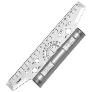- содержит транспортир 180 град. и трафареты окружностей;