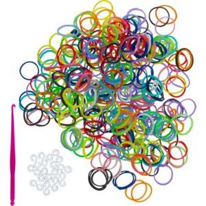В наборе: 300 штук резинок, 1 крючок, 12 соединительных S-клипс.