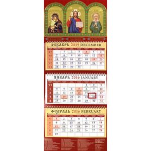 Календарь на 2016 год, настенный, квартальный с курсором для выделения текущей даты и указанием трапез и постов.