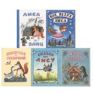 Лиса и заяц. Кот и петух. Волк и Козлята. Лисичка со скалочкой. Сказки про лису. Комплект из 5-и книг.
