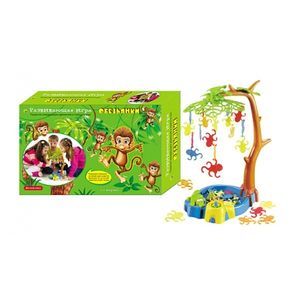 "Обезьянки" - интересная и увлекательная настольная игра, направленная на развитие координации движений и ловкости рук! Игрокам предстоит в порядке очереди разместить обезьянок на пальме одну за другой, следуя указаниям рулетки, чтобы ни одна обезьянка и пальма не упали в озеро, кишащее крокодилами. Проиграет тот, из-за чьей обезьянки упадет пальма! Игра предназначена для 1-4 игроков в возрасте от 3-х лет и старше. Игра содержит мелкие детали!
