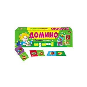 Состав набора: 28 пластиковых фишек домино с картинками.
