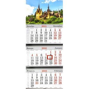 Календарь квартальный на 2016 год.