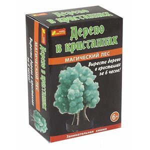 В набор входит: подставка-держатель, раствор для роста кристаллов, картонное деревце, инструкция.