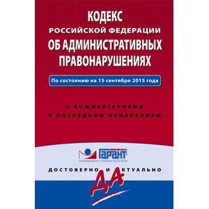 Настоящее издание содержит текст Кодекса Российской Федерации об административных правонарушениях по состоянию на 15 сентября 2015 года с комментариями юристов компании "Гарант". В настоящем издании также содержатся уникальные обзоры последних важных изменений в Кодекс, которые наглядно показывают изменившиеся фрагменты документа.